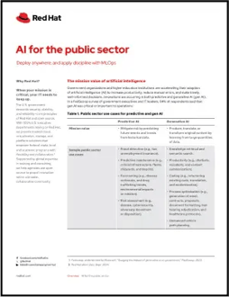Discover how organizations in the public sector can leverage Red Hat OpenShift AI for optimized resource management, scaling, and model maintenance. Red Hat® OpenShift® AI optimizes artificial intelligence (AI) resource management, scales to meet workload demands, and maintains AI models. Learn more about AI-enabled applications in the public sector.